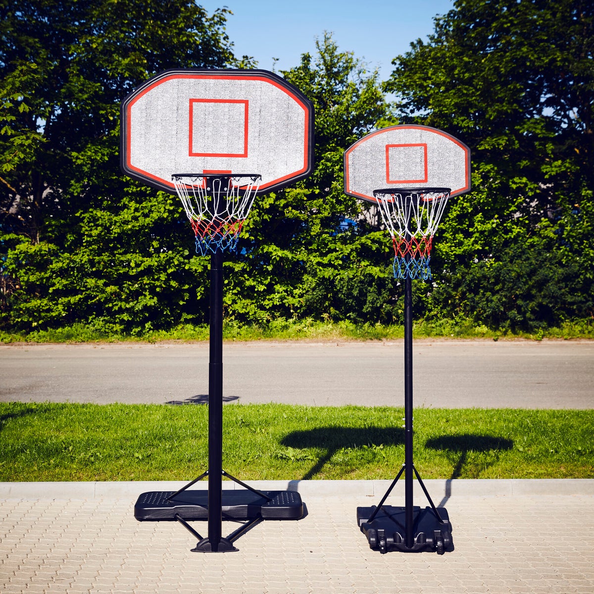 Jalustassa on kaksi kahvaa, jolla voit helposti säätää korin korkeutta niin, että sekä perheen nuorin, että vanhin voivat nauttia koripallosta. Sitä voidaan säätää 179 - 213 cm korkeuteen.