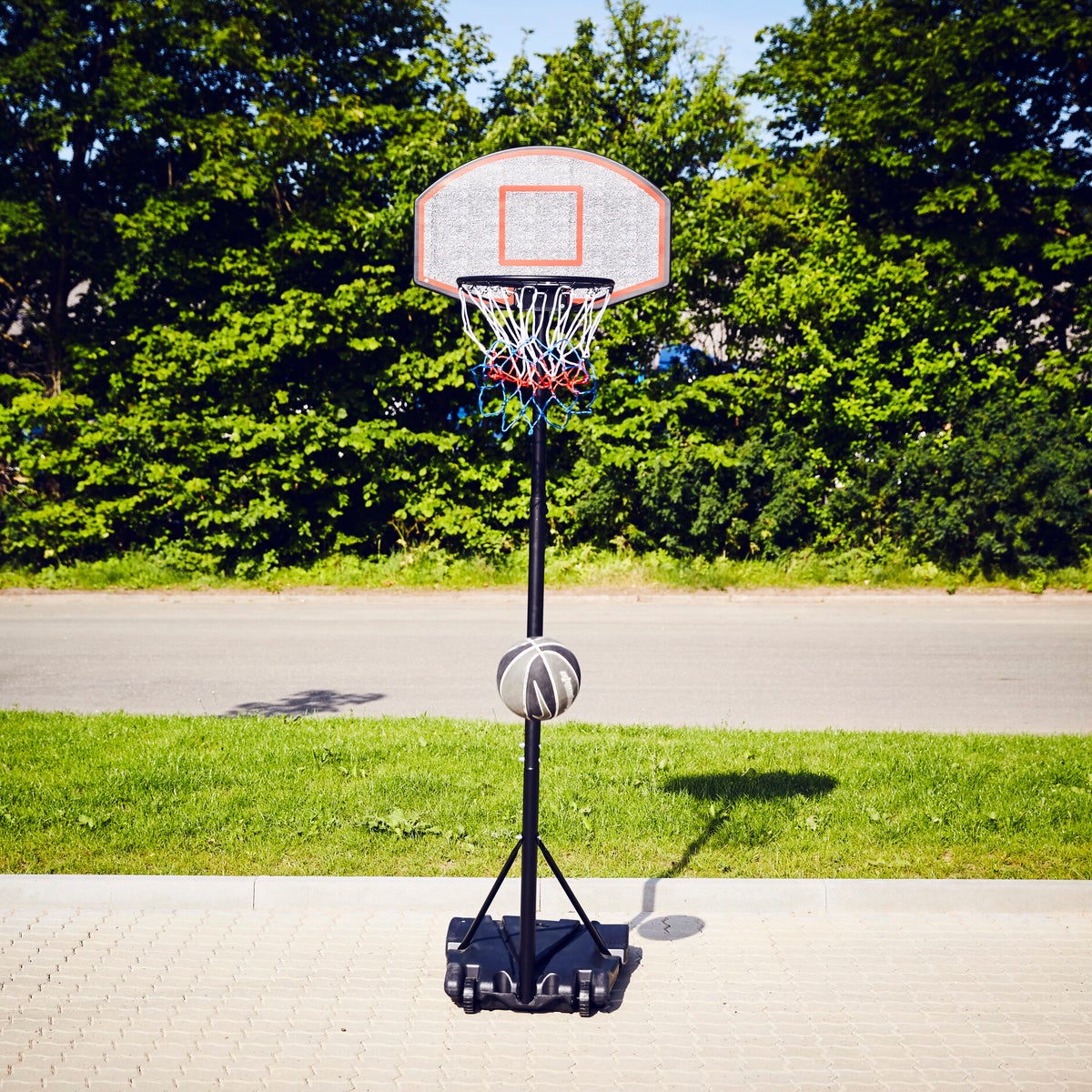 NORDIC Gamesin Basic koripalloteline on siirrettävä, vankka ja hyvälaatuinen koripalloteline hintaan nähden. Täytä pohja joko hiekalla tai vedellä ja sinulla on vakaa käyttövalmis koripalloteline.
