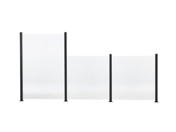 Tämä lasipaneeliaita on helppo pystyttää. Jokaisen lasipaneelin mukana tulee neljä ruuvia ja vääntimen kärki. Lasipaneelin alumiinikehyksessä on valmiit reiät ruuveille.