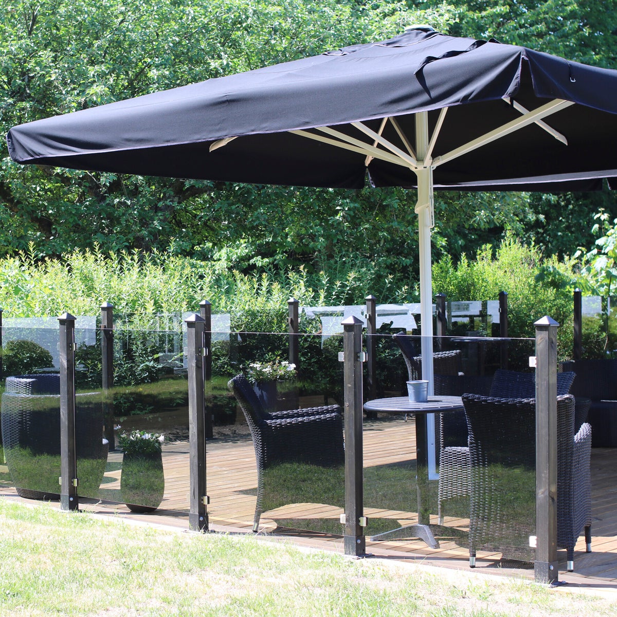 1 kpl lasipaneeleita 100×100 cm sisältäen 4 kpl. kiinnikkeitä ruuveineen