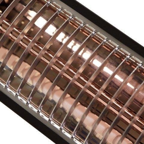 Seinälle asennettava HORTUS -terassilämmitin on näppärän ja ohuen muotoilunsa ansiosta oivallinen valinta katosten, terassien ja räystäiden alle sijoittavaksi lämmittimeksi. Sen moderni Golden Tube -infrapunatekniikka tarjoaa nopean käynnistyvyyden ja korkean 92% hyötysuhteen, joten huomaat merkittävän eron perinteisiin infrapunalämmittimiin. Lämmitin tuottaa 1500W teholla miellyttävää lämpöä jopa noin 3-5 metrin päähän. Golden Tube -infrapunaelementin käyttöikä on vähintään 7000 tuntia. Lämmittimen kotelosuojausluokka on IP55, joten se sopii vedenpitävänä myös suojaamattomiin kohteisiin.