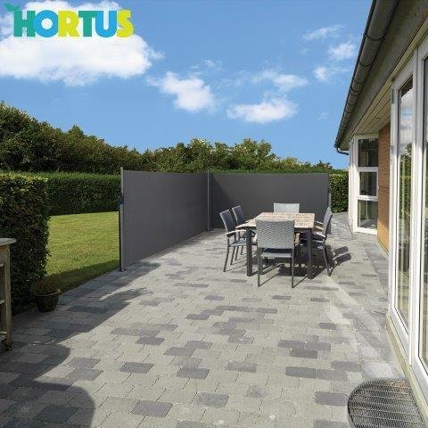 HORTUS- sisään vedettävä kaksisuuntainen sivumarkiisi on oivallinen tuulisuoja sekä näkösuoja terassille ja puutarhaan.