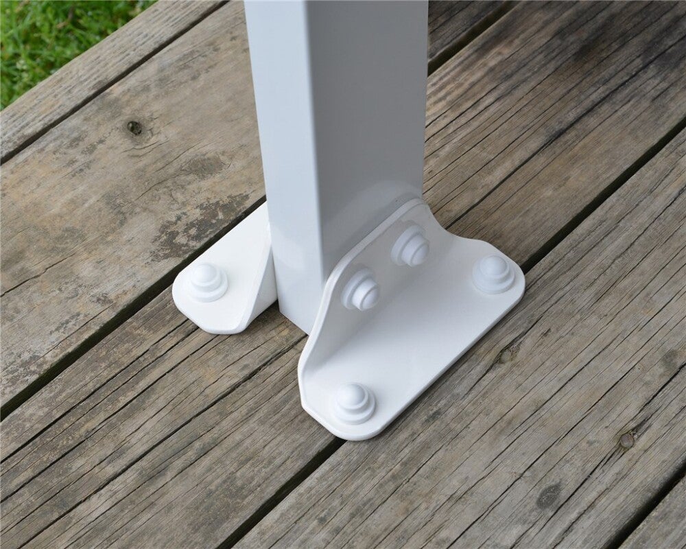 Tämän vankkarakenteisen terassikatoksen tukipylväät ovat sijoittelunsa suhteen säädettävät, joten sovittaminen ja asentaminen omaan käyttökohteeseen käy helposti.