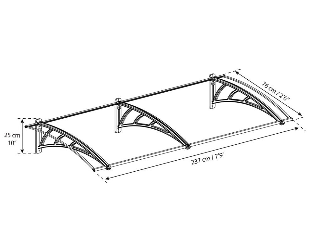 Tämä nykyaikainen, kaareva katos suojaa kätevästi oviaukkoa tai ikkunaa ankarilta sääolosuhteilta. Katoksen materiaalit ovat ympäristöystävällisiä. Katos lisää koko rakennuksen tyyliä ja arvoa.