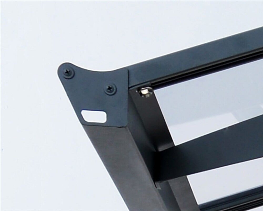 Laserleikatut galvanoidut ja pulverimaalatut teräskannakkeet sekä vahvat ja kestävät alumiiniprofiilitolpat.