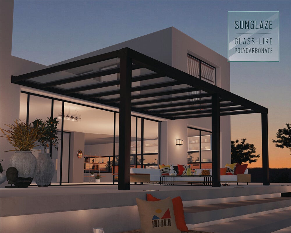 Palram - Canopia Stockholm -terassikaton on poikkeuksellisen tyylikäs ja puhdaslinjaisen designinsa ansiosta erityisen sopiva modernin arkkitehtuurin rakennusten yhteyteen. Tällä terassikatoksella saat kaiken hyödyn irti terassistasi ja otat lisätilaa käyttöön tinkimättä tyylistä. Nauti ulkotilojen avaruudesta ja puutarhastasi ympäri vuoden pienistä sateista piittaamatta. Palram - Canopia Stockholm -terassikatos auttaa sinua ja ystäviäsi viettämään enemmän rentouttavaa laatuaikaa ulkosalla. Terassikatoksen alla on mukava istua iltaa, ruokailla ja järjestää perhejuhlia.