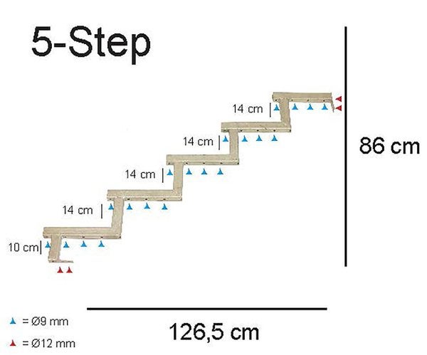 HORTUS -porrasrungon avulla rakennat helposti portaat juuri tarpeesi mukaisesti. Porrasrunko on valmistettu galvanoidusta metallista. Täm varmistaa optimaalisen kestävyyden pohjoismaisessa ilmastossa. Askelman syvyys on 28 cm ja askelkorkeus on 14 cm, poikkeuksena ala-askel, jonka korkeus on 10 cm. Porrasrungoissa on valmiiksi Ø9 mm reiät porraslautojen kiinnittämistä varten. Rungoissa on lisäksi Ø12 mm reiät porrasrunkojen kiinnittämiseksi kiinteään alustaan tai seinään. Hanki sopivat porraslaudat askelmiksi paikallisesta rakennustarvikeliikkeestä. Suosittelemme porrasrunkojen väliseksi etäisyydeksi 60 cm. Valittavissasi on tuoteversiot 2, 3, 4 ja 5 askelmalle.