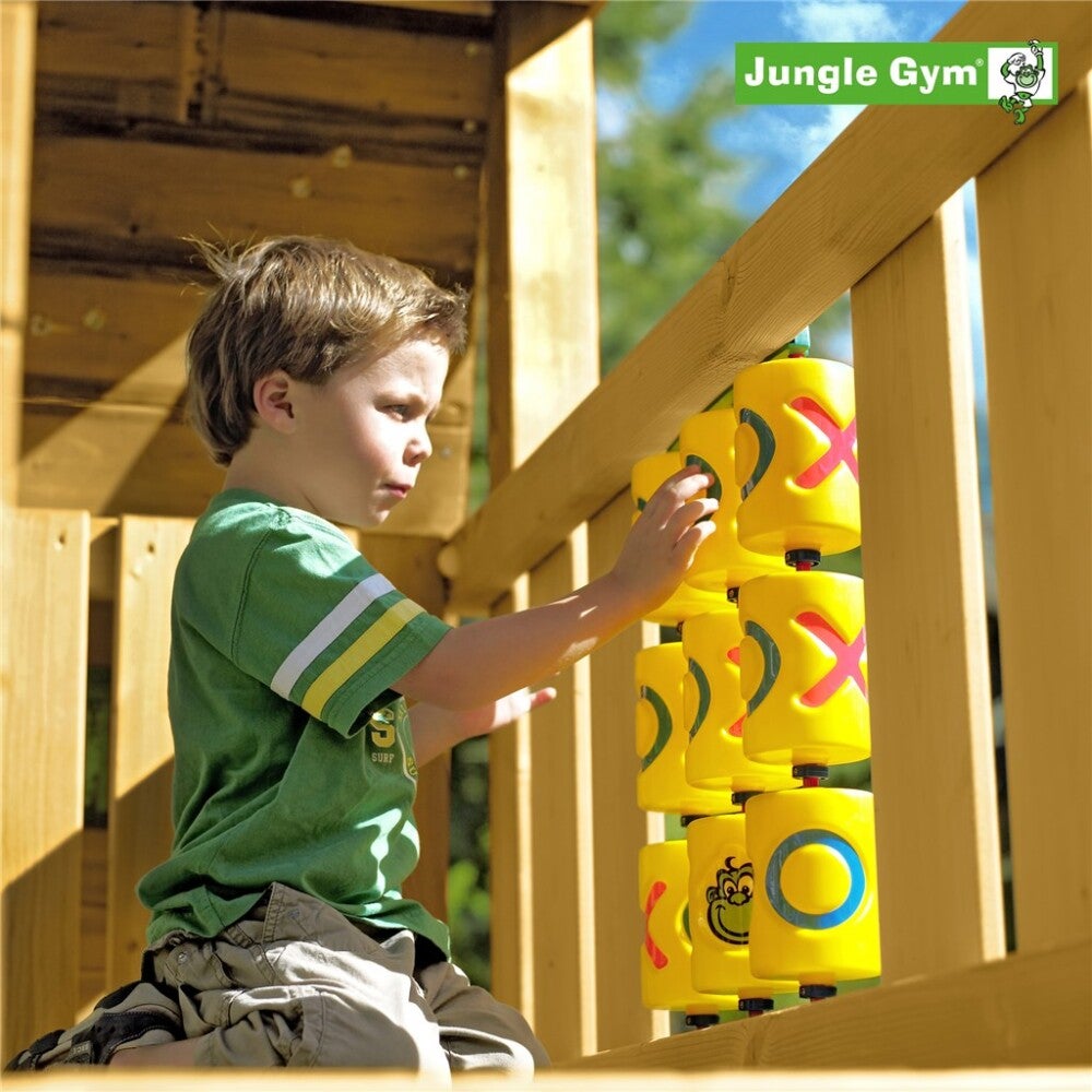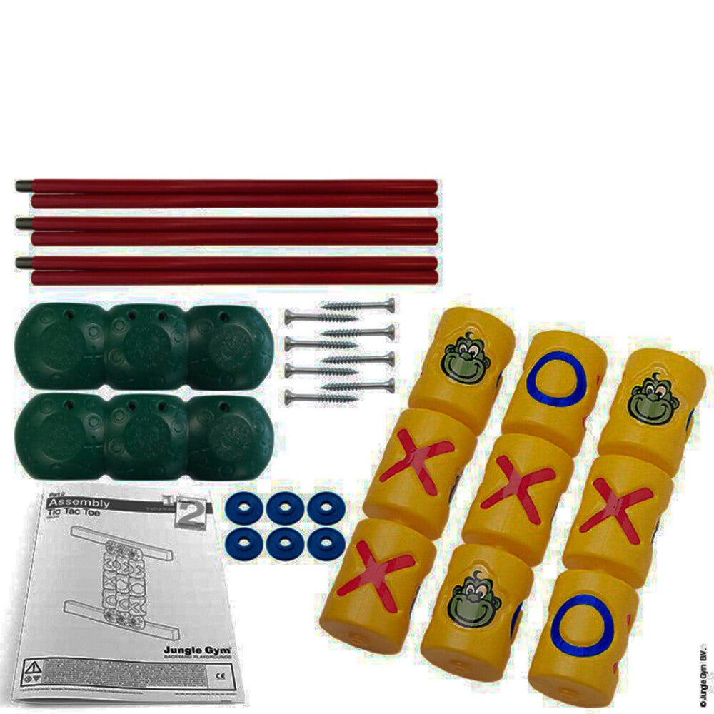 Jungle Gym “Tic Tac Toe” Module (X & O -peli) on täydellinen tee se itse -pakkaus, jossa on mukana perusteellinen asennusohje ja kaikki osat ristinolla-pelin liittämiseksi leikkitorniin. Toimitukseen ei sisälly työkaluja.