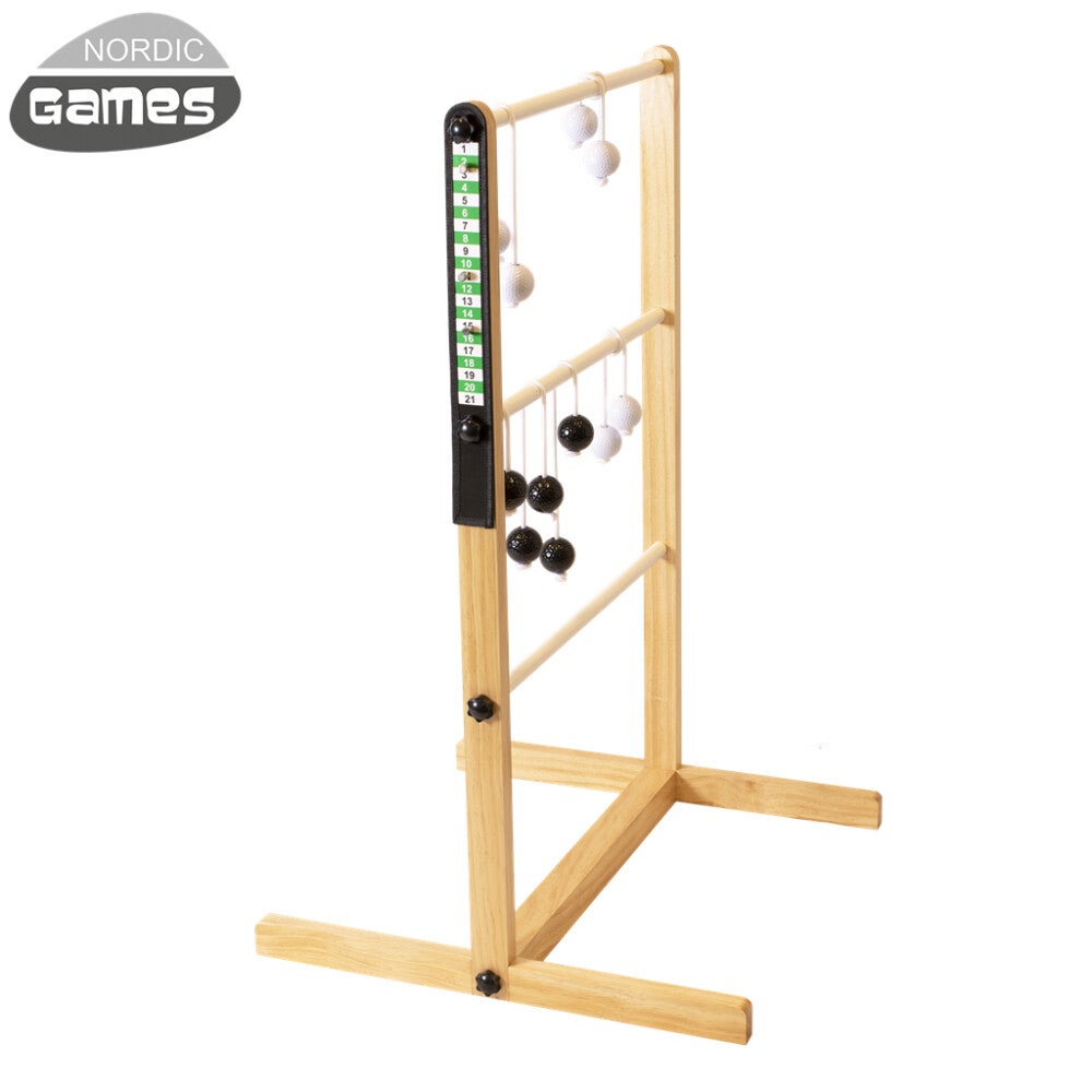 Ylimmäinen puola antaa 3 pistettä, keskimmäinen antaa 2 pistettä ja alimmainen 1 pisteen. Jos kaikki pallot roikkuvat samalla puolalla, saat 1 bonuspisteen. Maksimi pistemäärä per kierros on 7 pistettä - jos kaikki roikkuvat ylimmällä puolalla. Se joka saa ensimmäisenä 21 pistettä voittaa. NORDIC GAMES:in tikasgolf deluxe on laadukas peli, joka on valmistettu FSC® sertifioidusta puusta. Tikasgolfin sivuilla on magneettinen tulostaulu, jossa pisteitä voidaan kirjata mukana toimitetuilla magneeteilla. Lisäksi pallot ovat oikeita golfpalloja. Peli on tarkoitettu kahdelle pelaajalle tai kahdelle joukkueelle, mutta se voidaan laajentaa neljään pelaajaan tai neljään joukkueeseen tilaamalla ylimääräisiä narussa olevia golfpalloja. Sarjan mukana tulevat golfpallovärit ovat valkoinen ja musta. Sarjoja voidaan laajentaa golfpalloilla, joiden väri on sininen ja vihreä.