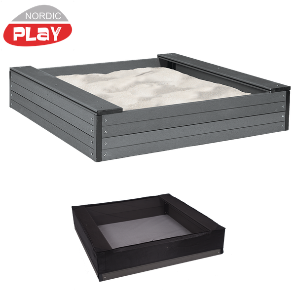NORDIC PLAY Hiekkalaatikko penkeillä 24 x 120 x120 cm, komposiitti sis. verkko