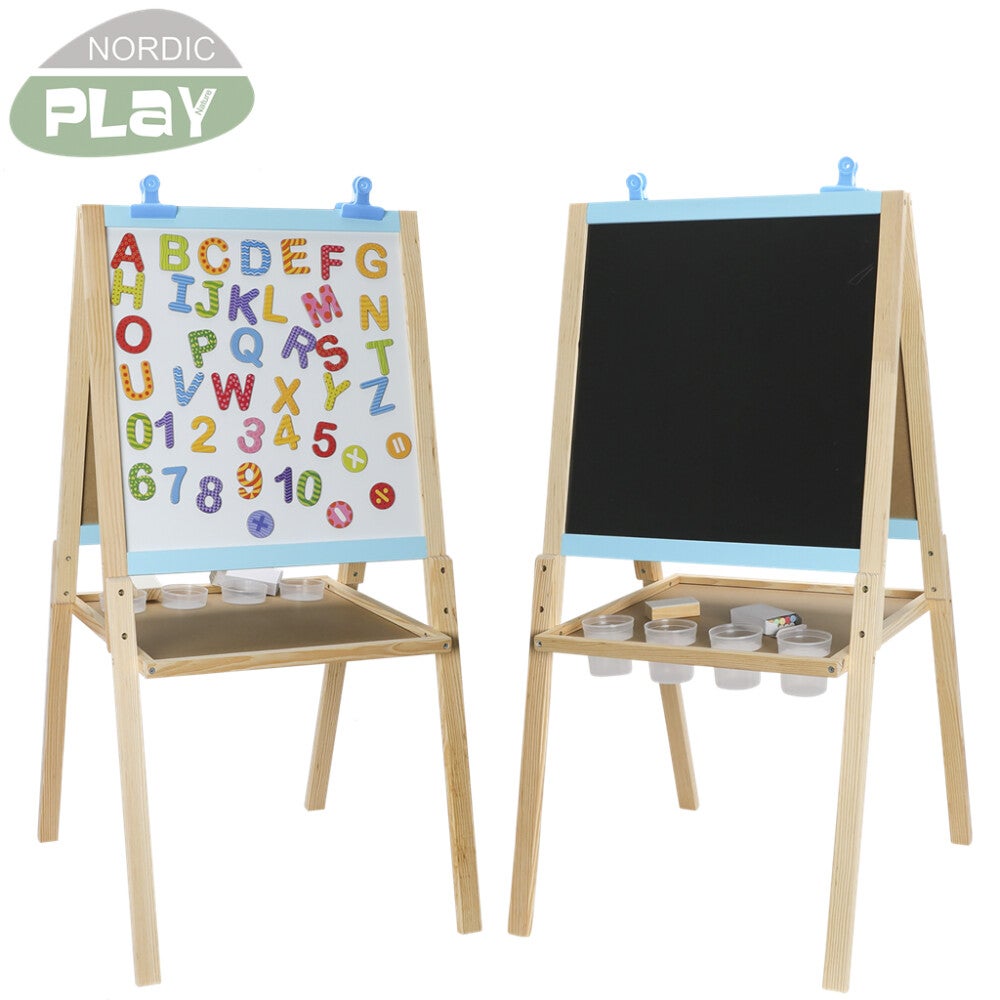 NORDIC PLAY Nature 3-in-1-piirustustaulu Liitutaulu toisella puolella ja magneettitaulu toisella. Taulussa on käytännöllinen säilytyslokero.