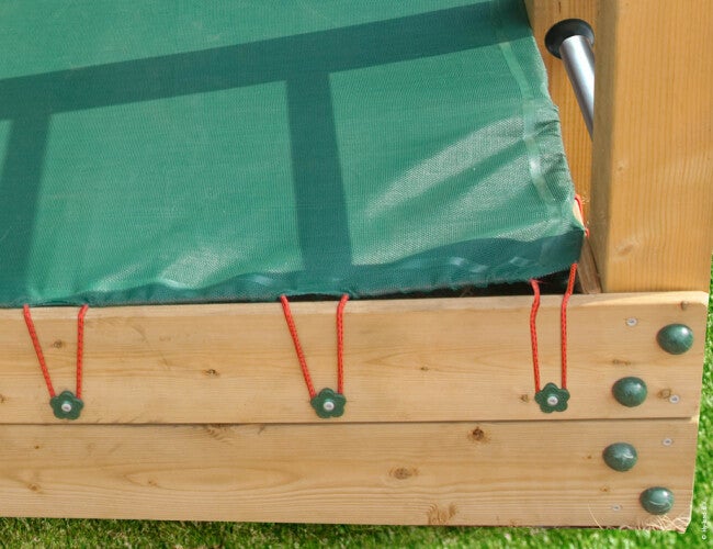 - Leikkitornin alla hiekkalaatikko varusteineen (sokkeli)
