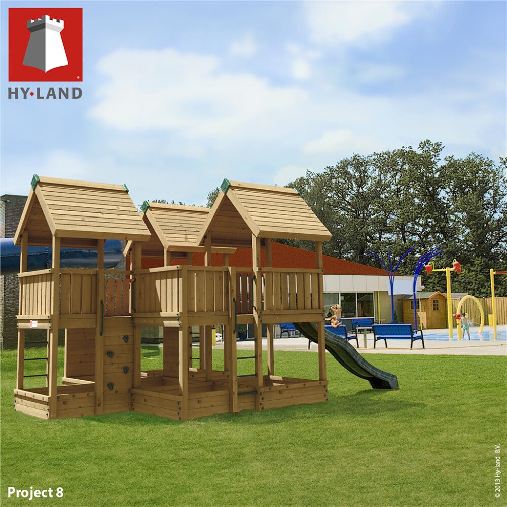 Hy-Land on vankka leikkiteline julkiseen käyttöön (standardi EN1176), mutta se sopii yhtälailla myös yksityiseen käyttöön. Suunnittelussa on otettu huomioon turvallisuuden lisäksi myös monikäyttöisyys. Kaikissa leikkitorneissa on tietenkin liukumäki sekä maan tasalla sokkelin muodostama hiekkalaatikko. Parhaimmillaan leikkitorni ajaa pitkälti myös leikkimökin virkaa. Kun yhteen ja samaan kokonaisuuteen on koottu useita toimintoja, saadaan leikkimiseen varattu alue pihassa hyödynnettyä optimaalisesti ja edullisesti.