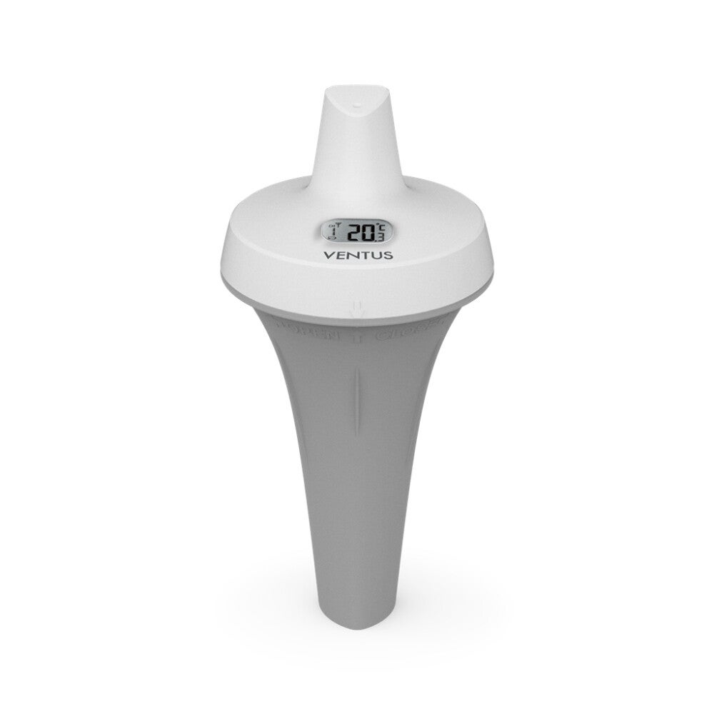 Lämpömittari on kelluva ja siinä on näyttö, josta lämpötila voidaan lukea C / F.