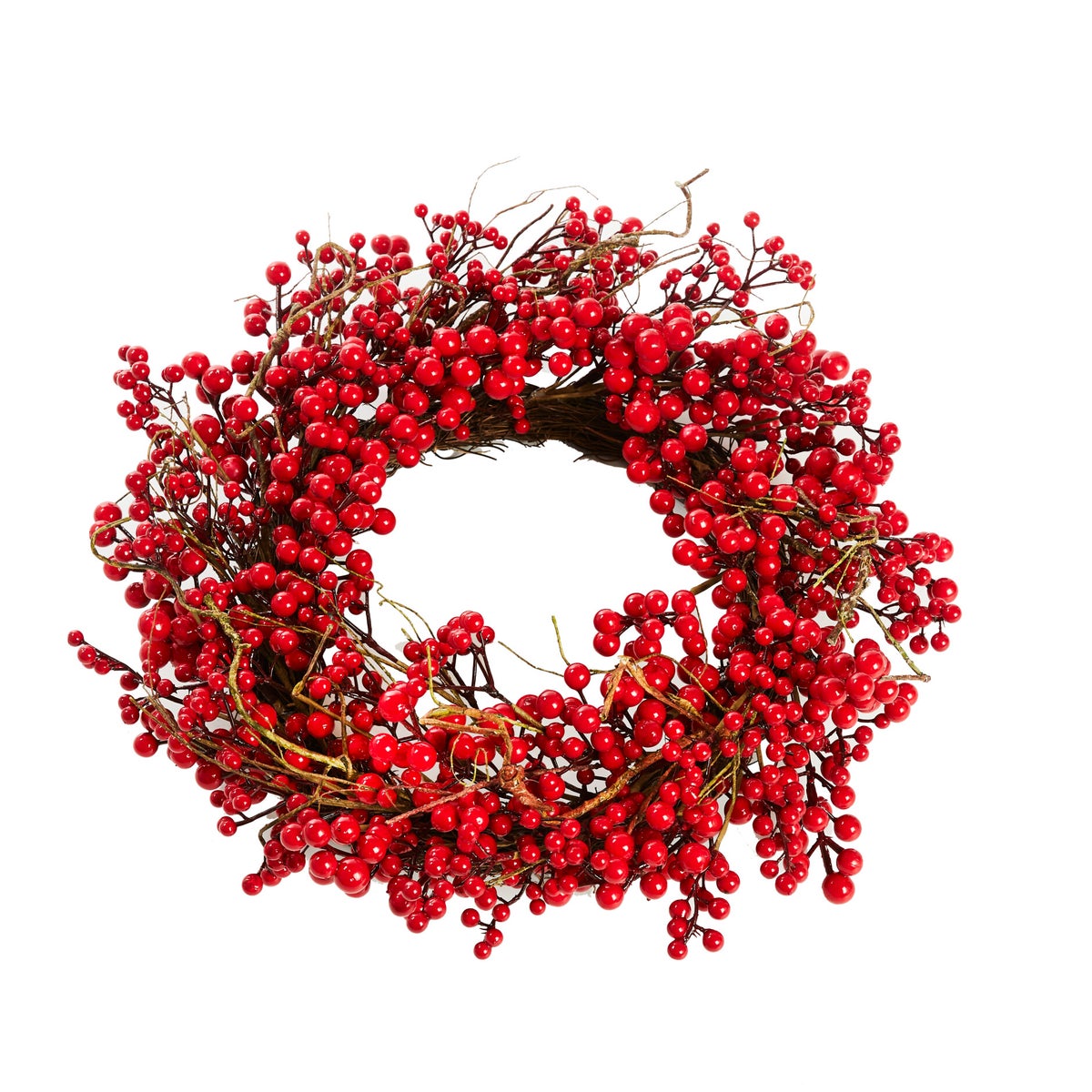 Kaunis ja tyylikäs kranssi punaisilla marjoilla. Sopii koristeluun niin syksyllä kuin jouluna. Mitat Ø60 cm.