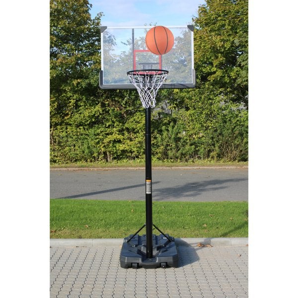 NORDIC Games Deluxe -koripalloteline on siirreltävä ja silti erittäin tukeva teline vaativimmillekin pelaajille. Kookas jalusta täytetään vedellä tai hiekalla, jolloin teline pysyy pystyssä kaikissa sääolosuhteissa. Itse telineessä on kaksi kahvaa, jolla voit helposti säätää korin korkeutta, jotta sekä perheen nuorin että vanhin voivat nauttia koripallosta. Sitä voidaan säätää 200-305 cm korkeuteen. Jalustassa on sisäänrakennetut pyörät, jotka helpottavat suuren ja raskaan koripallotelineen siirtämistä.