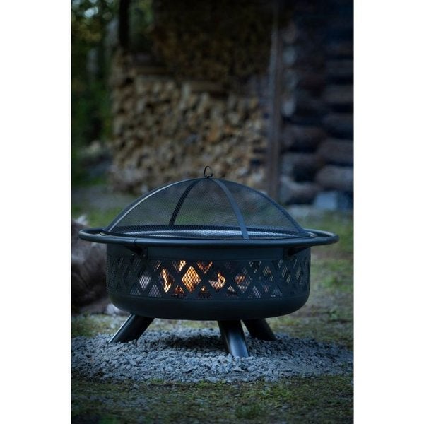 Iso ja kaunis nuotioalusta tuo pihalle tunnelmaa. Helppo asentaa, vain jalat kiinni ja kehys paikoilleen ja Livingston on valmis. Grillissä on kipinäsuoja, joka pitää liekit hallinnassa nuotiopaikan sisällä. Mukana grillausritilä halkaisija 74 cm.