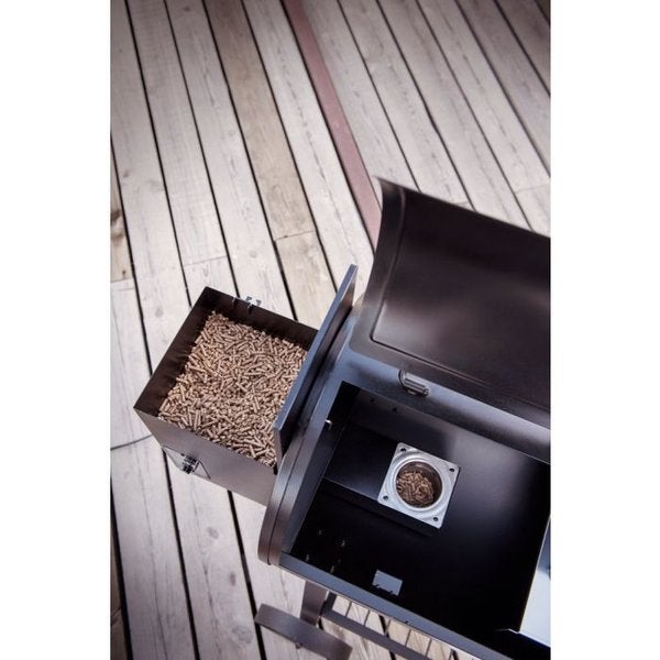 Erittäin tukeva, klassinen pellettisavustin. Pelletit sijoitetaan erilliseen lokeroon, josta syöttöruuvi siirtää tarvittavan määrän pellettejä polttimelle. Savustustilassa on runsaasti pinta-alaa. Savu johdetaan ulos savupiipusta ja rasvat ja marinadit johdetaan kenolleen sijoitetulla rasvapellillä rasvaämpäriin. 8 eri lämpötila-asetusta grillaamiseen, 7 erilaista asetusta savustukseen. Todella tukeva pellettisavustin.
